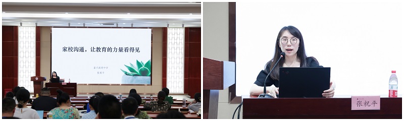 張祝平通過分享自身班主任帶班生涯中一個與學生及學生家長間發生的長達6年的家校溝通案例,點明家校溝通的重要性。她借助圖片、視頻、音頻等多媒體媒介,從圖片留痕、文字攻心、語音助力、視頻觸心、直播深入、公眾效應、智慧聚力七方面,介紹了她的班主任帶班經驗。她強調,只有有效溝通才能達到教育的同頻共振。班主任要本著同向、信任以及平等的原則,積極與學生及家長建立溝通,讓教育的點滴被看到和聽到,促使家校共同為孩子的教育留痕,真正實現家校一體、同向同行。