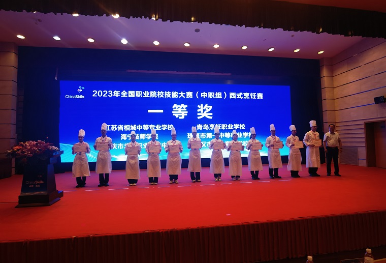 7月24日至28日,由教育部主辦的2023年全國職業院校技能大賽(中職組)西式烹飪賽項在青島舉行。本次比賽中,海寧技師學院蔣寧蘋、孫嘉憶兩名同學與來自全國各省、市、自治區、直轄市和計劃單列市的55支代表隊、110名學生同臺競技,最終以精湛的烹調技藝、扎實的專業功底、良好的精神風貌斬獲佳績,奪得金牌。