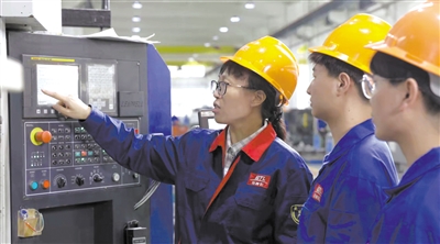 ②機械設計與制造(閥門設計與制造)專業教師潘淑微在企業進行實訓指導。學校供圖