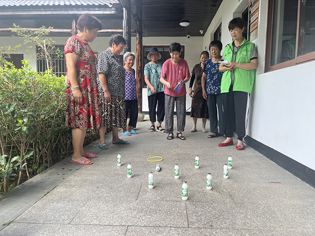 活動伊始,工作人員為帶動各位老年人的活動興致,帶領大家玩了一個套圈游戲,就是利用手上的套圈套中地上的道具,套中越多拿到的獎品就越多,雖然獎品只是一些牛奶餅干,但是大家玩得十分盡興。老年人日常能參與的游戲很少,偶爾能組織大家一起玩小游戲,也是十分有趣的。隨后,工作人員帶著老年人回顧了上一次活動的所得所悟,他們深感幾次活動下來,大家都變得開朗許多。接著工作人員讓大家兩兩組隊,鑒于前面四次活動的經驗積累,本組的老年人們已經互相破冰熟悉,建立了一定的信任,于是很快分好了隊伍,工作人員讓每組老年人上前面對面手拉手,一方訴說最近心煩的事,對方給予疏導和建議,然后交替,大家都十分坦然地講出自己遇到的困境以及自己的感想,幾次互動下來,大家已經認知到不合理的信念會使我們產生情緒困擾,所以我們首先要做的是找出自己的不合理信念,加以正確看待,在彼此的相互疏導下,心里舒暢了許多,很多老年人表示,好幾天睡不著覺,結果來這說了一下,竟然想通了!