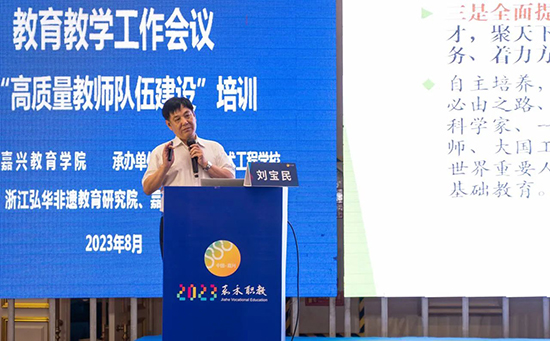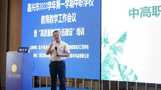 嘉興教育學院副院長都建明做會議培訓總結(jié)。他指出,此次培訓工作“很及時、很豐富、很圓滿”,同時希望教師厚植教育情懷、確立正確思想、提高育人智慧、豐富專業(yè)知識、提升專業(yè)技能,奮力推動全市中等職業(yè)教育高質(zhì)量發(fā)展。