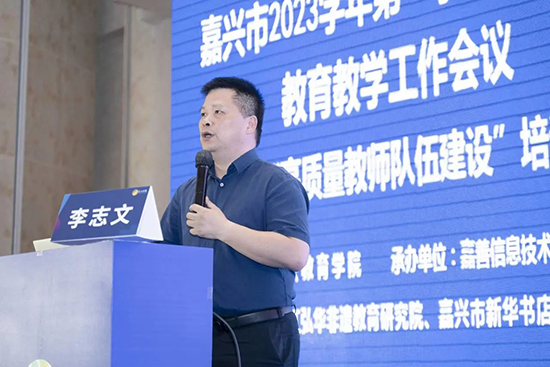 8月11日下午,嘉興教育學院職教處副處長李志文主持嘉興市中職學校教育教學工作會議,他從落實立德樹人、推進“三教改革”、優(yōu)化類型定位、加強內(nèi)涵建設四大方面,分析總結(jié)2023年上半年嘉興市中職學校教育教學工作情況,深入剖析嘉興市2022學年中等職業(yè)學校學生學業(yè)增值評價(試點)數(shù)據(jù),強調(diào)了增值評價在教育教學中的重要性。同時,李志文圍繞“讓每個孩子都被看見”的愿景,從立德樹人、聚焦課堂、數(shù)字資源、專業(yè)建設、教育評價五大方面,部署下半年嘉興市“三全育人”典型學校遴選、“嘉禾職教·看見課堂”系列活動等重點工作思路。