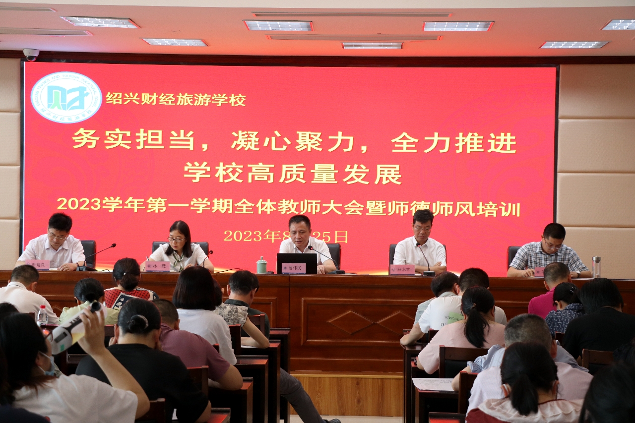 8月25日上午,紹興財(cái)經(jīng)旅游學(xué)校召開2023學(xué)年第一學(xué)期全體教師大會暨師德師風(fēng)培訓(xùn)會,大會由校長薛水林主持。