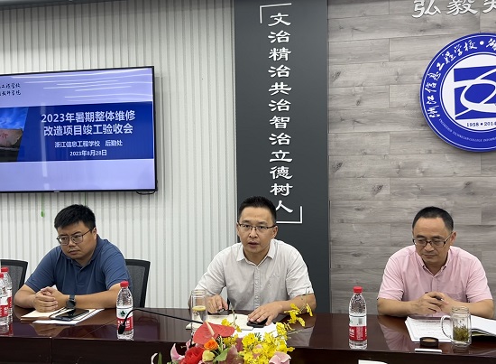 8月28日下午,浙江信息工程學校·湖州工程技師學院2023年暑期維修改造項目(教學樓衛生間改造、學生2號寢室樓衛生間改造)竣工驗收現場會召開。湖州市教育發展有限公司總經理楊如林,學校紀檢組組長、副校長朱曉慧,副校長湯方榮以及后勤處、學生處、專業部相關老師、項目建設各相關單位人員參加會議,此外還邀請市屬兄弟學校總務主任參與驗收。會議由后勤處處長吳蕙蘭主持。
