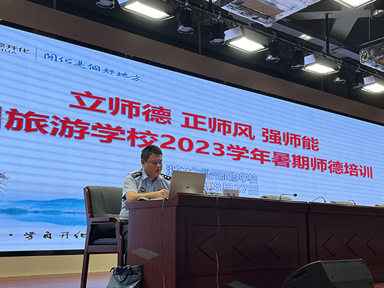 “風正揚帆遠,氣正鑄師魂。”學校特邀華埠派出所副所長溫泉進行專題培訓。溫所長“以案釋法”,闡明了教師在校園安全中應嚴守的道德底線與法律紅線。一起起典型案件,警示廣大教師要恪守職業操守,維護好教師職業形象,做好孩子健康成長的引路人和護航艦。