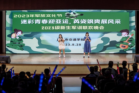 為豐富軍訓生活,展示新生才藝,8月28日,嘉興市交通學校舉行2023年軍旅文化節新生軍訓聯歡晚會。學校副校長張雪明、許賢超及相關部門負責人,與新生和班主任們歡聚報告廳,共賞視聽盛宴。