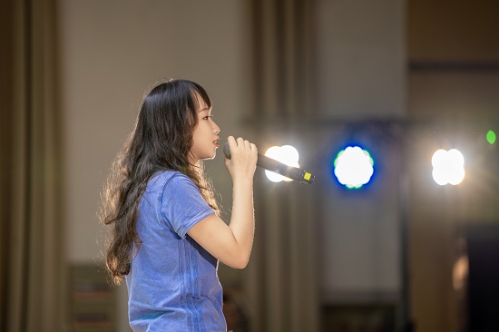 今年的校園十佳歌手——21物流1班王靖雯和21城軌1班何佳鮮兩位學姐也來到現場為晚會助力,一首《背對背擁抱》,讓新生們一睹了十佳歌手的風采。