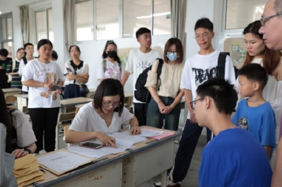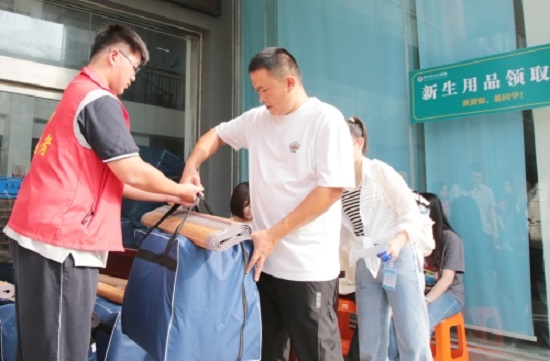 班主任們有條不紊地按流程為新生報到辦好手續,竭盡所能幫助新生盡快熟悉校園生活,讓家長放心、讓學生安心。綜合服務組的老師們耐心解答學生費用、專業咨詢、校園卡異常等疑問。生活用品組的老師們來往于寢室和物品發放點之間,做好生活用品發放和寢室安排協調工作,汗水不經意間浸濕了衣裳。這一切都讓新生們感受到了親人般的關懷,成就了學生與建校的初次美好遇見。