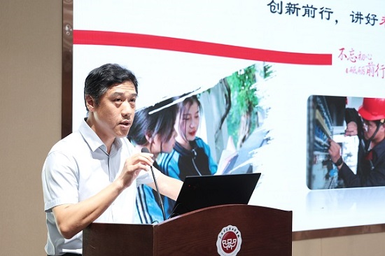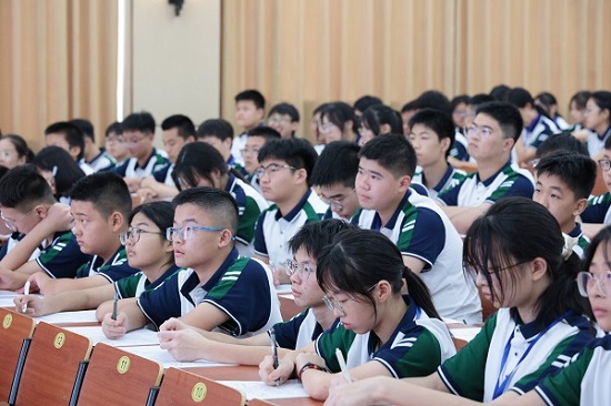 一曲校歌奏畢,龔磊為新同學編織出未來的展望:追求夢想,講好成長的故事;勤思善學,講好學習的故事;創新前行,講好未來的故事。新同學又該如何書寫自己的青春,創造自己的傳奇故事?室外,驕陽似火,室內,反響熱烈,同學們目光如炬,逐漸陷入沉思。