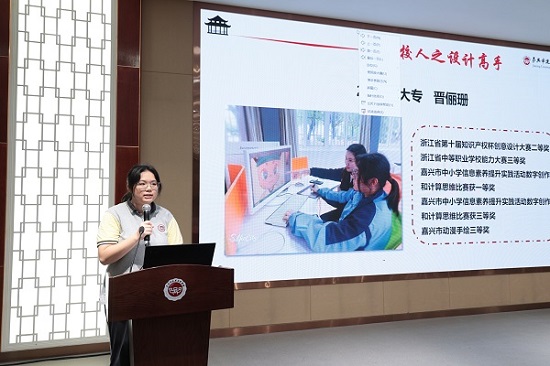 “知所從來,思所將往,方明所去。”了解學校的過去,方能與建校一道展望未來,一道成長。龔磊從“我的家”一詞生發,講述了建校辦學60多年間的故事,建校由嘉興縣十八中學走來,幾度更名、三遷校址,一代代建校人篳路藍縷、艱辛創業,打造了“我的家”文化品牌、豐富了魯班精神內核——榫卯之美,學校校標——一個斗拱,介于梁柱之間,承上啟下,傳遞荷載,架托棟梁。