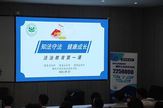 為加強學生的思想教育、法制教育、安全教育,進一步增強學生的安全防范意識,增強青少年的法制觀念,構建安全、文明、和諧校園,近日,埭溪司法所聯合埭溪派出所為湖州市現代農業技術學校的學生帶來“知法守法,健康成長”法治教育第一課。