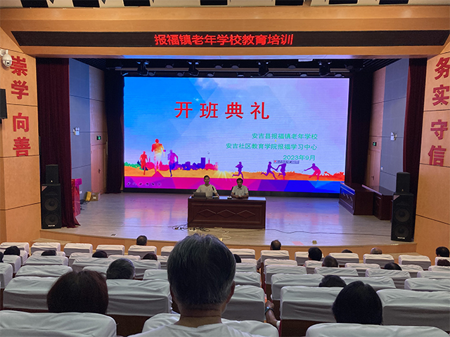 9月7日上午,湖州市安吉縣報(bào)福鎮(zhèn)老年學(xué)校2023年秋季開學(xué)典禮在報(bào)福村文化禮堂舉行,50余名學(xué)員歡聚一堂,喜迎老年學(xué)校新學(xué)期開學(xué)。