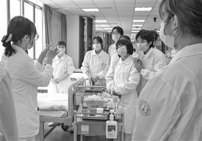 金華職業(yè)技術(shù)學(xué)院醫(yī)學(xué)院學(xué)生在學(xué)校仿真醫(yī)院參加實(shí)訓(xùn)。學(xué)校供圖
