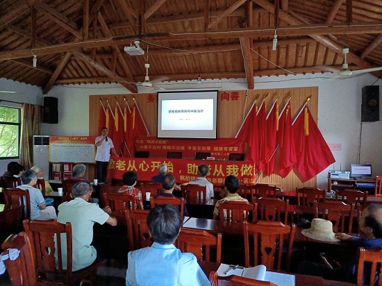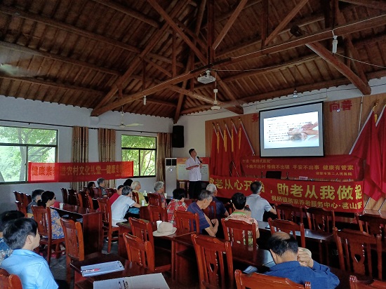 日前,紹興市諸暨市楓橋鎮社區教育學校聯合諸暨市第二人民醫院中醫科副主任醫師鐘強等專家一起來到離楓橋鎮最遠的偏僻山村——馬嶺村,在文化禮堂內對老年人開展健康科普講座。