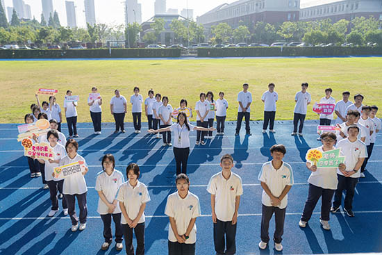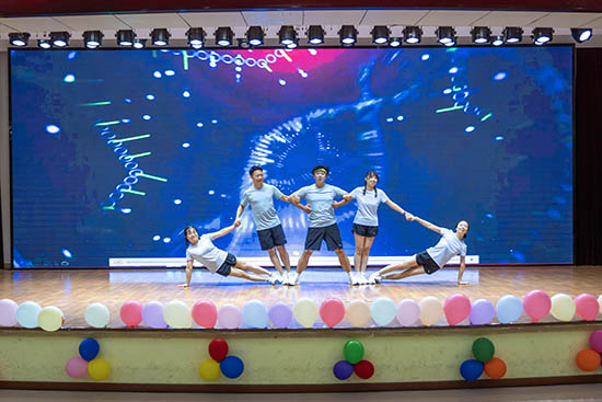 學校老師不囿于三尺講臺,運動場亦有他們的矯健身姿。副校長許賢超與張娜、李志剛、董文芳、李暄老師為大家帶來動感十足的健身操表演,展現了教師們熱衷運動、昂揚向上的精神狀態,為杭州亞運會的到來加油助威。