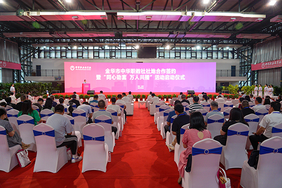 會上,同期啟動“同心助富·萬人共播”活動,活動由金華市職教社主辦,金華職業技術學院承辦。金華職業技術學院校長梁克東在啟動儀式上表示,學校將大力培養“能工巧匠”“大國工匠”,讓技能點亮人生;持續深化“職教改革”“三教改革”,給夢想插上翅膀;積極成為“先鋒隊”“排頭兵”,打造職教“金字招牌”。