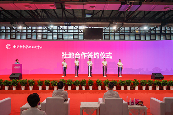 儀式上開展了“同心助富·職教有為”社地合作簽約儀式,武義縣新宅鎮、柳城畬族鎮,磐安縣安文街道、新渥街道與金華市職教社共同完成簽約。