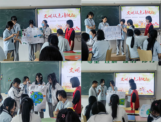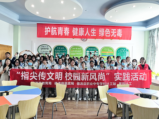 為宣傳與促進(jìn)學(xué)生精神文明建設(shè),提高學(xué)生道德素質(zhì)和公共參與核心素養(yǎng),9月11日上午,在德清縣教育局和民政局的大力支持下,德清職業(yè)中專心理輔導(dǎo)中心和學(xué)校社工站合作開展“指尖傳文明 校園新風(fēng)尚”實(shí)踐活動(dòng)。本次活動(dòng)由星辰社工徐玉和徐甜來校組織帶領(lǐng)22服裝3+2班同學(xué)開展,由專職心理老師崔明敏主持,王美麗老師和談瑩老師共同參與。