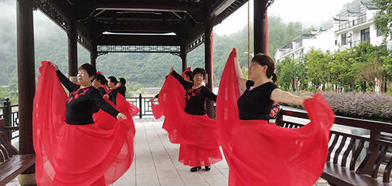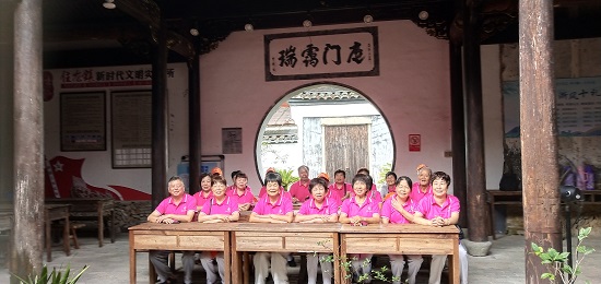 9月15日清晨,旗袍隊(duì)隊(duì)長潘連娣老師帶隊(duì)于河畔休閑亭,在優(yōu)美的樂曲聲中,隊(duì)員們翩然起舞,似蝴蝶、似孔雀,雖雙鬢如霜,皺紋如轍,卻映襯出銀齡教師唯美向上、所樂所為,給寧靜的小山村增添了一道亮麗的風(fēng)景線。