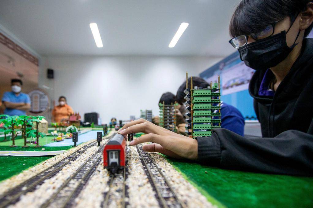 3月14日,在泰國大城府大城技術學院魯班工坊鐵院中心,學生在高鐵運營沙盤教學區學習。新華社記者 王騰 攝