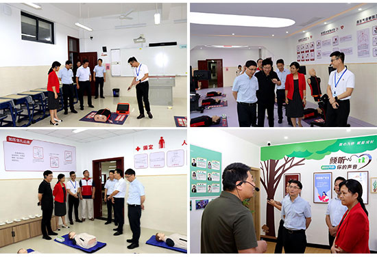 戴瑩首先實地參觀了學院新建的“柯橋區(qū)紅十字應(yīng)急救護培訓基地”教學區(qū)、體驗區(qū)和實訓區(qū),隨后,來到“柯橋區(qū)青少年生命成長中心”進行參觀指導,并現(xiàn)場聽取學院有關(guān)負責人關(guān)于基地融合紅十字運動文化傳播、生命教育、救護培訓等建設(shè)情況的工作匯報。