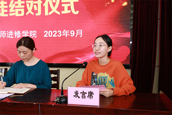 長興教師進修學院師訓處朱建芳老師從培訓內容、培訓方式與途徑以及考核辦法三方面,詳細解讀了師徒結對實施方案。實驗幼兒園施無雙作為徒弟代表發言,表示會努力做到虛心向學請教,用心學習模仿,潛心體悟反思。實驗小學董春景作為導師代表承諾:會真心育德,真誠授業,真情引領,做到師徒之間教學相長、切磋提升。實驗中學副校長單張偉作為基地學校領導代表,在發言中表示將發揮基地學校的硬件優勢、師資隊伍優勢和辦學特色優勢,會全力支持、協作、保障好每一次活動的開展,讓基地學校成為新教師成長的新舞臺。結對儀式上,師徒雙方鄭重簽下協議,領導們為2023學年導師代表頒發了聘書。