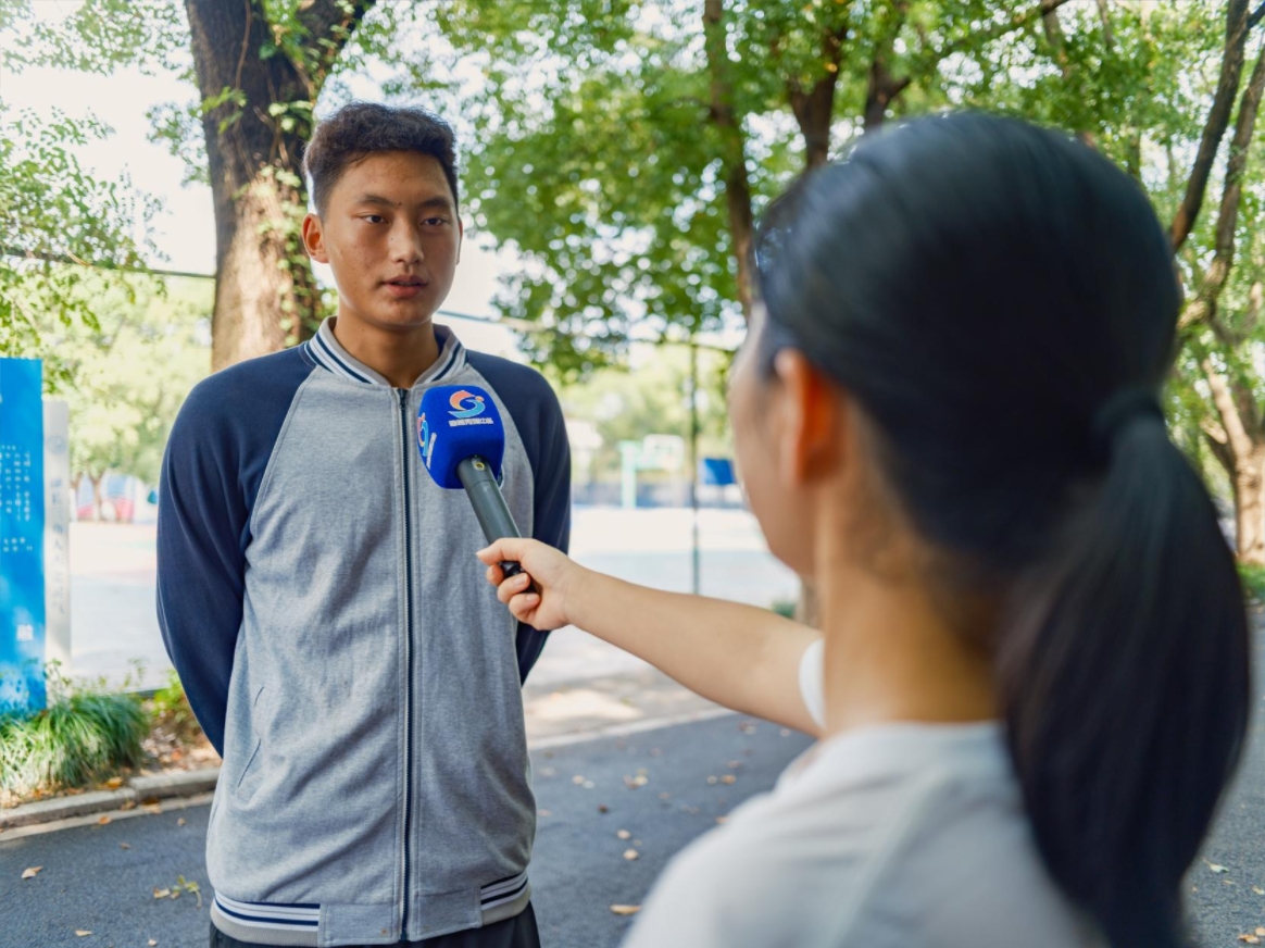 來自九寨溝的龍澤同學還接受了嘉善電視臺的采訪,龍同學用家鄉藏語“扎西德勒”向遠在千里之外的家人傾訴了思念,也向全校師生表達了中秋的祝福。