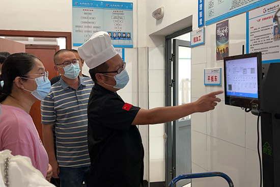 家委會成員們在趙娜的帶領(lǐng)下,參觀餐廳后廚的洗菜區(qū)、切配區(qū)、配餐間及消毒間等處,全面了解食堂操作的各個環(huán)節(jié),對學(xué)校食堂的食品加工和服務(wù)樹立了信心,收獲了安心。