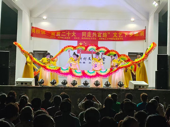 據悉,此文藝匯演由楓橋鎮人民政府組織,楓橋鎮綜合文化站、楓橋鎮社區教育學校、楓橋鎮楓之韻藝術團承辦。演員均為本鄉本土的文藝愛好者,以楓橋鎮楓之韻藝術團成員為骨干。為宣傳貫徹黨的二十大精神,在鎮域內31個村(社區)開展“宣貫二十大 同走共富路”送戲下鄉文藝巡演,為村民提供精神食糧,豐富群眾的文化生活。(孫文明)