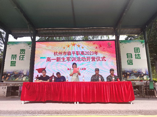 9月25日上午,杭州市臨平職業(yè)高級(jí)中學(xué)2023年高一新生軍訓(xùn)開(kāi)營(yíng)儀式在長(zhǎng)樂(lè)林場(chǎng)隆重舉行。活動(dòng)由政教處主任章超主持,副校長(zhǎng)吳燕麗、軍訓(xùn)基地領(lǐng)導(dǎo)翁建江總顧問(wèn)以及軍訓(xùn)教官、高一1100余名新生參加開(kāi)營(yíng)儀式。儀式在莊嚴(yán)的國(guó)歌聲中拉開(kāi)序幕。