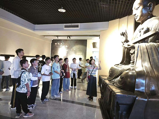 最后一站是著名的永康錫雕,始于五代,距今已經有一千多年的歷史。2008年,被列入國家級非物質文化遺產代表性項目。永康錫雕館是浙江省非物質文化遺產宣傳展示基地、省工業旅游示范基地。是集錫雕工匠創作、傳習、展覽、體驗為一體的錫雕文化場所。在老師的帶領下,納雍學子們共同進入銅藝博物館內,參觀了司母戊鼎、銅雕大佛、五水共治、平安城市金鼎、三馬九鈴等等從古至今各式銅制品。同學們紛紛對精妙的錫雕工藝豎起了大拇指。臨近中午,美好的體驗活動即將結束,納雍學子們依依不舍地在入口留下合影。(胡錦濤/文 應哲 馬云飛 駱怡冰/圖)