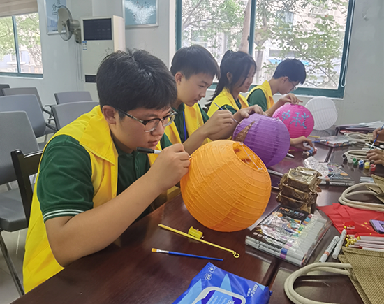 在社區何主任的帶領下,志愿者進行了花燈DIY活動,每位志愿者都拿到紙燈籠、膠水、貼紙、馬克筆等材料,志愿者們相互討論,查閱圖片,全神貫注,認真對待每個步驟,同時發揮奇思妙想,由各位志愿者發揮自己的DIY創意出中秋花燈。