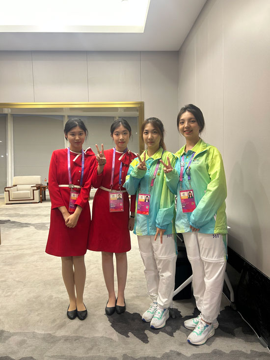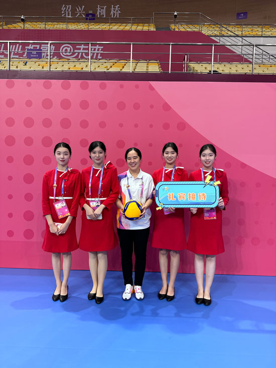 紹興市柯橋區職業教育中心“青春禮行社”也有四朵“小青荷”有幸入選,她們承擔了本屆亞運會紹興賽區場館禮賓接待工作。亞運前夕,她們每天都要進行微笑、手位、站姿等訓練,任憑汗水浸濕衣背,只為了把最好的姿態在亞運期間呈現給全世界。