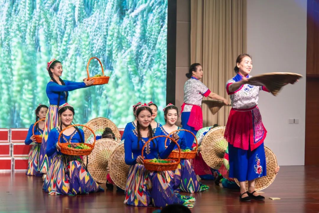 合編合演民族舞《大美“浙·疆”》,由浙江老年開放大學平湖學院老年學員和平湖市職業(yè)中專新疆中職班學生共同演繹,描繪了我國農民在黨的領導下,各民族為慶祝豐收祈福的盛大勞動場景。更加體現浙江省在共同富裕背景下,老年開放大學率先踐行“兩個先行示范區(qū)”的擔當作為。