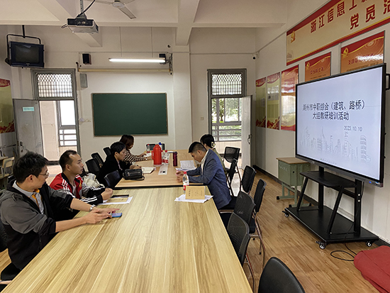 10月10日,湖州市中職學校綜合(建筑、路橋)大組教研培訓活動在浙江信息工程學校開展。活動由湖州職成教教研中心姚蓮蓮老師安排及主持,浙江信息工程學校教務處、后勤處等各處室和理工部協助安排。浙江信息工程學校、湖州交通技師學院、長興技師學院、安吉技師學院等四所院校建筑、路橋專業11名教師參加。