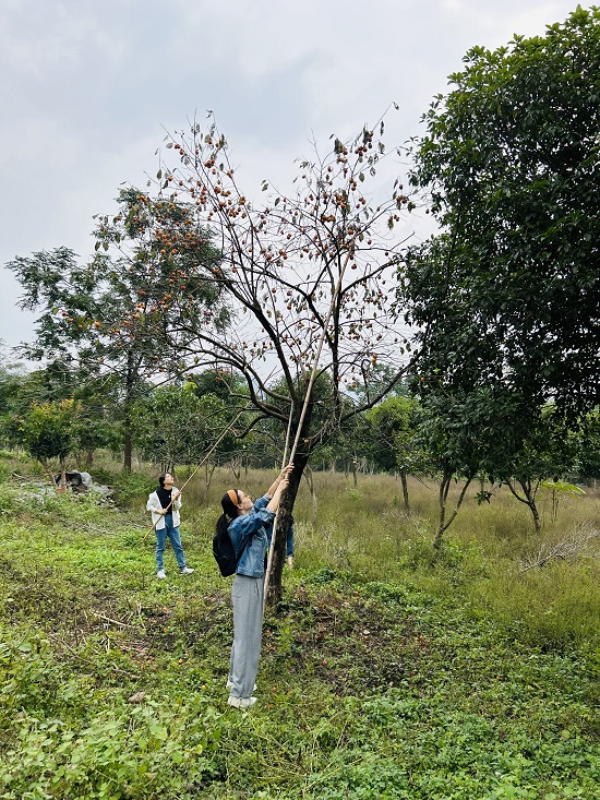 此時(shí),大干溪村的農(nóng)戶老李正爬上一棵柿子樹,他一邊嫻熟地用竹竿摘柿,一邊驕傲地說:“今年的柿子收成不錯(cuò),一斤可以賣到3元左右哩!”教職工們也紛紛擼起袖子,舉起竹竿采摘了起來,對于這份豐收的喜悅有了深刻的共情。