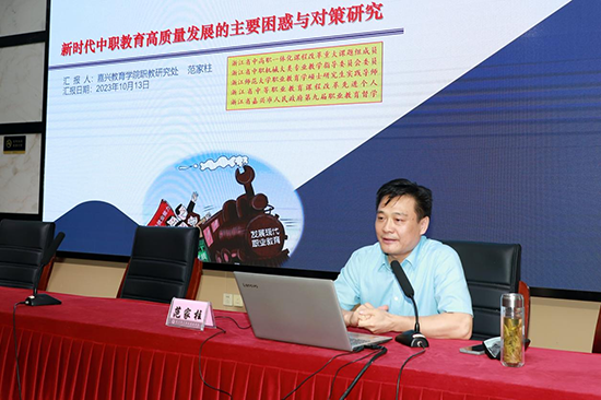 嘉興職業(yè)教育學(xué)院職教研究處范家柱教授作了題為《新時(shí)代中職教育高質(zhì)量發(fā)展的主要困惑與對(duì)策研究》主題報(bào)告,報(bào)告從四個(gè)方面闡述了目前職業(yè)教育面臨的困境,以及作為新時(shí)代職教骨干力量所努力奮斗的目標(biāo)和方向。范教授的講座提綱挈領(lǐng)、高屋建瓴,既有全局的高度、宏觀(guān)的角度,又有微觀(guān)的具體工作實(shí)踐,贏得了參訓(xùn)教師的陣陣掌聲。