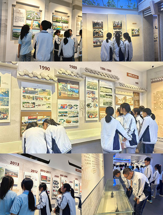 國以史為鑒,可知興替;校以史為鑒,可促發展。各班新生在班主任的帶領下,有序進入校史館參觀。同學們駐足觀看,從段段文字、張張影像中感受著學校厚重的歷史積淀和豐碩的辦學成果。