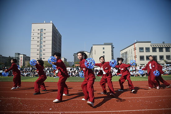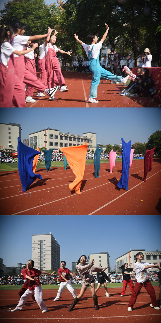 高一年級(jí)組學(xué)生帶來了亞運(yùn)主題表演《一起向未來》。他們的表演動(dòng)作整齊劃一,活力四射,展示了青荷學(xué)子團(tuán)結(jié)向上,奮發(fā)進(jìn)取的青春活力。