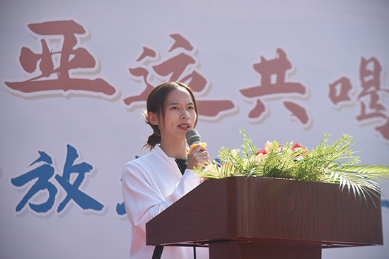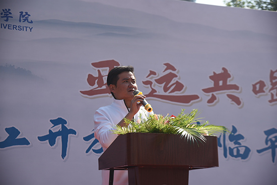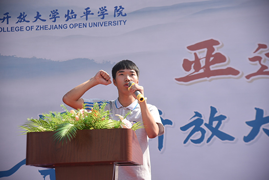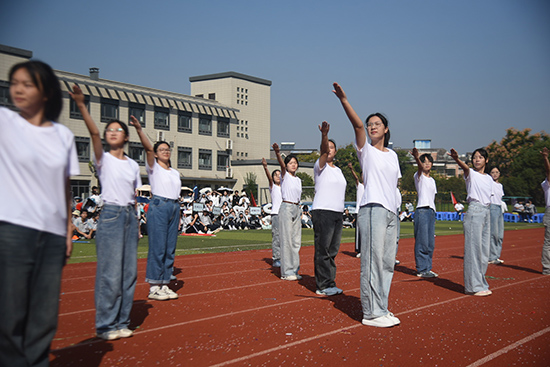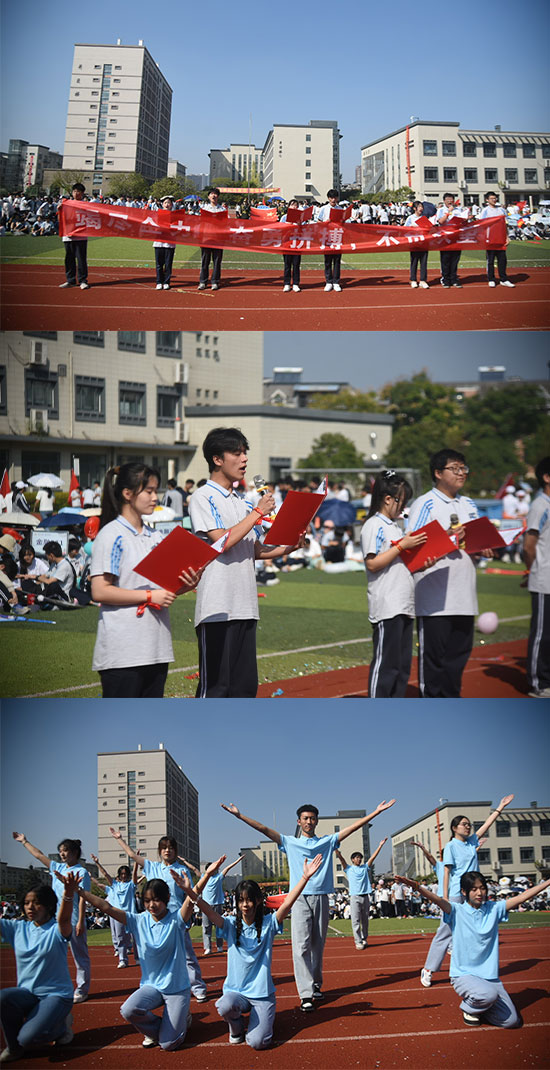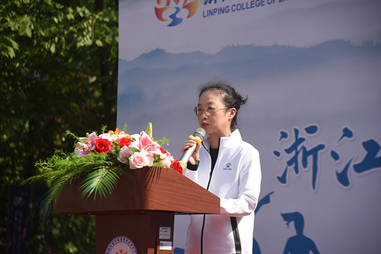 沈琪宣布浙江開放大學(xué)臨平學(xué)院第十三屆秋季運(yùn)動(dòng)會(huì)開幕。現(xiàn)場(chǎng)彩旗飄揚(yáng),掌聲雷動(dòng),為期兩天的校運(yùn)動(dòng)會(huì)正式拉開帷幕。