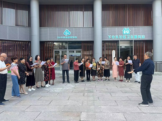 “退休的朋友們,今天來相會,白發有一把,皺紋有一堆。人變矮,腰變肥,生活還挺美,唱歌跳舞經常來聚會。挺胸膛,笑開眉,快樂屬于永不言敗的這一輩……”位于柯橋古鎮的小橋邊,一群充滿激情和活力的銀發族正在引吭高歌,原來是紹興市柯橋街道老年學校下市頭老年學堂的歌詠班學員正在上課。