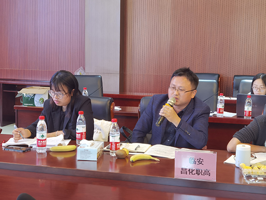下午,語文老師們集中一堂,開展本次教學的研討會議,老師們根據所聽課程,做出細致的評價,給出中肯的建議。高老師總結,本次課堂教學路徑清晰,具有很大的可推廣性,由“教”到“研”,也希望老師們不斷提煉總結,形成具有研究性的論文。接著,各學校對于文言文教學得失以及命題方式、方向等思考,教學計劃的交流分享。臨安職業教育中心的舒黎黎老師分析了高職考真題從2019年到2023年的變與不變,提出“重積累,抓落實”“試拓展,學運用”“立足而不拘泥”的應對策略。中策職高滕小毛老師以“課標”為基準,分析高職考的命題方向,并提出自己對于文言考題的思考和建議。臨安昌化職高的孫科建老師注重高三復習整體規劃,扎實推進,全面地分享了高三的復習計劃。閑林職高的魏伊莉老師從“學生備考”“學情分析”“歸納方法”“練習測評”四個方面進行了分享交流。隨后,余杭區教研員杜國平老師借助文言考題實例,向老師們展示了文言試題在“文言”“文學”“文章”“文化”等方面的思維訓練。活動最后,富陽職高楊楠紅老師解答了老師們對于文言命題的疑惑,明確了未來高職考的命題定位。