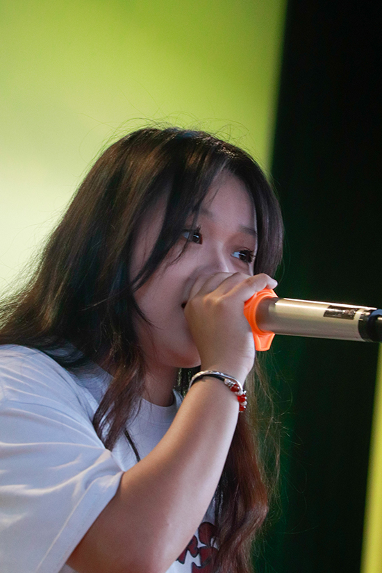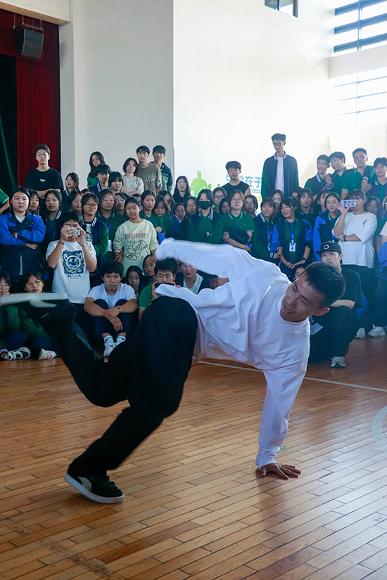 精湛的演唱技術和的自如的舞臺交流,讓臺下的同學沉醉在動聽的歌聲中。