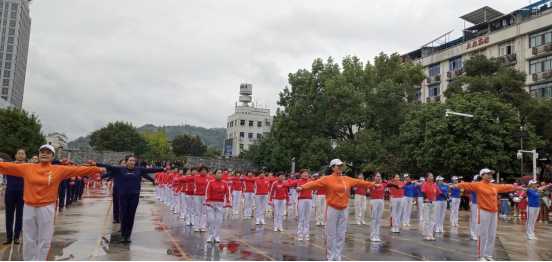 接著,縣退教協(xié)、俏夕陽(yáng)、美好彩虹、城南4個(gè)方陣90余人的啞鈴操開(kāi)始。隨著悠揚(yáng)的音樂(lè)聲,婀娜的身姿緩緩舞動(dòng),手持啞鈴的雙手,時(shí)而上下移動(dòng),時(shí)而前后移步,時(shí)而輕盈轉(zhuǎn)體。那一招一式,送往迎來(lái),人鈴合一,得心應(yīng)手,流暢自如。仙縣巾幗的風(fēng)采雅韻卻不減當(dāng)年。啞鈴操是一項(xiàng)健身運(yùn)動(dòng),長(zhǎng)期練習(xí),緩解局部疼痛,對(duì)人體的各個(gè)關(guān)節(jié)、肌肉以及大腦都能得到不同程度的鍛煉。