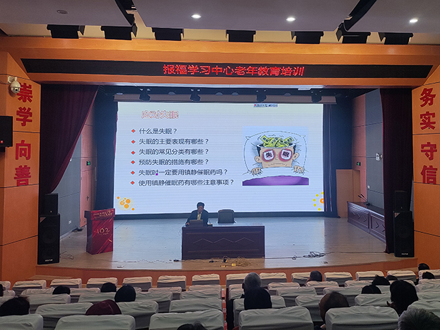 良好的睡眠有助于保障認知功能,恢復體力,維護免疫、代謝、內分泌相關的內環境穩定,11月3日上午,安吉社區教育學院報福學習中心在報福村文化禮堂開展“睡一個好覺”的健康知識講座,轄區五十余位老年朋友參加培訓。