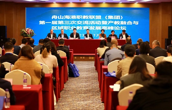 11月11日,舟山海港職教聯(lián)盟(集團(tuán))第一屆第三次交流活動(dòng)暨產(chǎn)教融合與區(qū)域職業(yè)教育發(fā)展高峰論壇在舟山市定海新華僑飯店隆重開(kāi)幕。舟山市職業(yè)教育與成人教育協(xié)會(huì)會(huì)長(zhǎng)、浙江國(guó)際海運(yùn)學(xué)院院長(zhǎng)吳中平,舟山市人社局調(diào)研員邊雅麗,舟山市經(jīng)信局副局長(zhǎng)孫宇,省一流技師學(xué)院建設(shè)委員會(huì)專(zhuān)家陳昆昌,舟山海港聯(lián)盟(集團(tuán))理事長(zhǎng)、學(xué)校黨委書(shū)記方軍,學(xué)校黨委副書(shū)記、校長(zhǎng)許猛,學(xué)校黨委委員、副校長(zhǎng)韓擁軍及兄弟學(xué)校專(zhuān)家領(lǐng)導(dǎo)出席活動(dòng)。許猛致歡迎辭,活動(dòng)由韓擁軍主持。企業(yè)代表、教師代表120人參加活動(dòng)。
