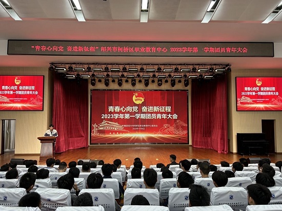 為深入學習貫徹習近平總書記關于主題教育系列重要講話精神和重要指示批示精神,深入學習習近平總書記在浙江考察時的重要講話精神,牢牢把握動員引領廣大團員和青年認真學習領會習近平新時代中國特色社會主義思想這一根本任務,近日,紹興市柯橋區職業教育中心團委在學校報告廳隆重舉行“青春心向黨 奮進新征程”2023學年第一學期全體團員青年大會。校黨委書記鐘建康、副校長繆偉亮、校團委書記蔣瑩潔、專職團干張利娟以及各學院團總支書記出席了此次會議。