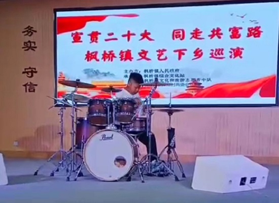 11月3日晚,諸暨市楓橋鎮新擇湖村的文化禮堂內人聲喧嘩,樂曲聲不斷。諸暨市楓橋鎮社區教育學校組織楓橋鎮楓之韻藝術團演員為主的“楓橋鎮‘宣貫二十大,同走共富路’送戲下鄉文藝巡演”晚會正在演出。