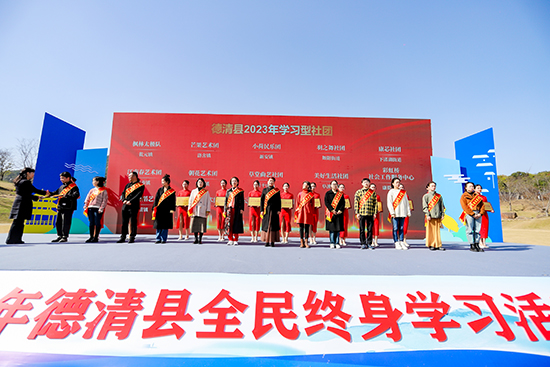 開幕式上進行了學習型社團、學習型家庭和百姓學習之星的表彰儀式,宣布了德清縣2023年省級以上職成社教集體榮譽成果,公布了德清縣第八屆社區居民才藝大賽獲獎作品并頒發獎牌,舉行了德清縣社區教育文藝成果匯報展演。