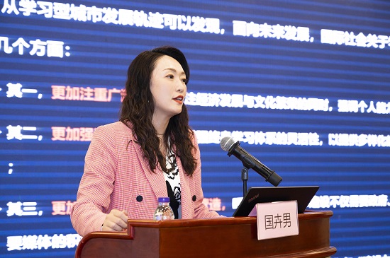 上海市教科院副研究員,上海市學(xué)習(xí)型組織建設(shè)研究中心副主任,上海市社區(qū)教育實驗項目管理辦公室副主任國卉男同志,分享了“國際學(xué)習(xí)型城市建設(shè)發(fā)展趨勢”。
